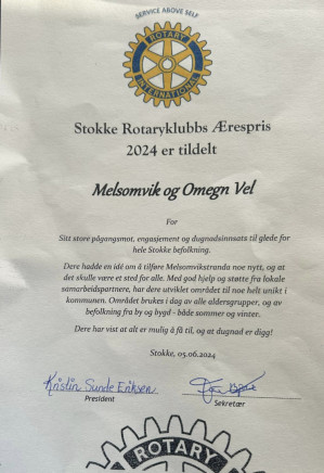 Stokke Rotarys ærespris for 2024 ble 5. juni 2024 tildelt Melsomvik og Omegn Vel for deres store pågangsmot, engasjement og dugnadsinnsats for Melsomviks, og hele Stokkes, befolkning. Prisen består av et diplom og en økonomisk gave på kr 6.000.